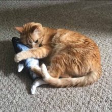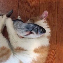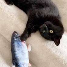Since opening this toy, my cat has refused to put it down. He has spent literal hours just carrying it everywhere with him and watching it until the battery finally died and he lost interest. Luckily, the fish has a rechargeable battery so I just plugged the fish in overnight and it was as good as new in the morning. He likes to carry the fish everywhere with him, it even came bird watching on the windowsill with him. The motor to the fish isn’t loud but it isn’t silent either, the fish has an on/off switch so I make sure to turn it off at night time while it’s recharging so that I’m not woken up by a stuffed fish flapping on my face. Definitely a fun toy for cats and it comes highly recommended by my cat.