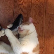 My cat Petey has taken complete ownership of the toy. He is attacking the other cats when they go near it. I had no idea it would be such a big hit with the kitties. The fish find flop like a fish out of water. It’s great.