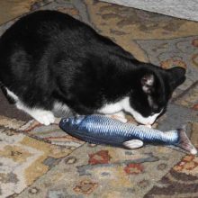 To preface this review, my cat does not typically like to play with toys— I barely had a chance to remove this toy from the packaging before my she tried to destroy it. She loves to hate this fish!